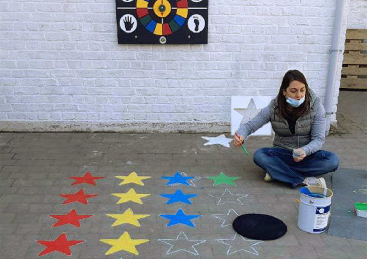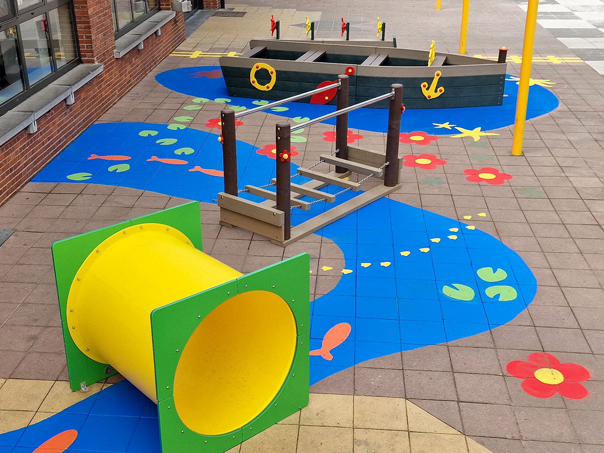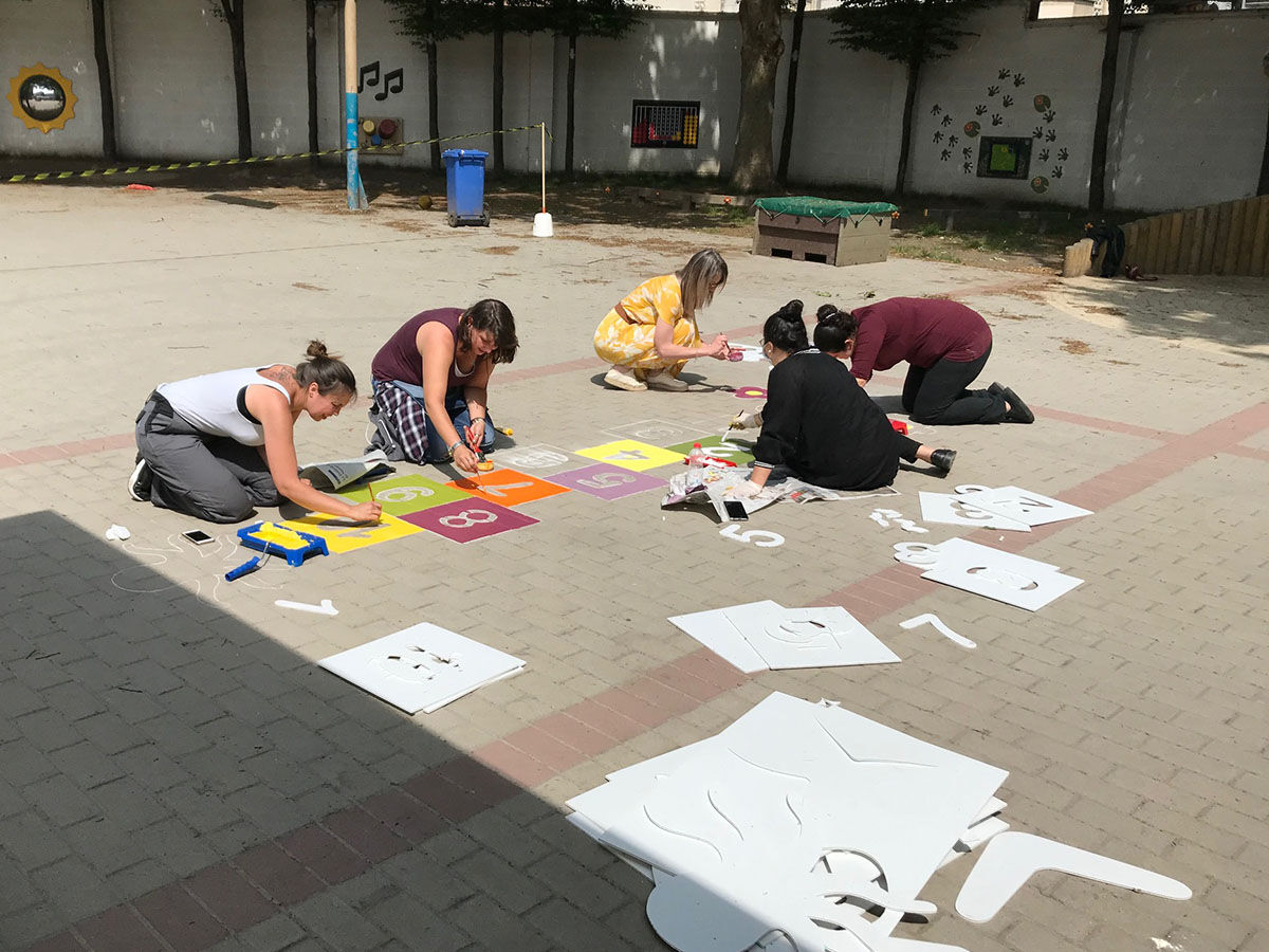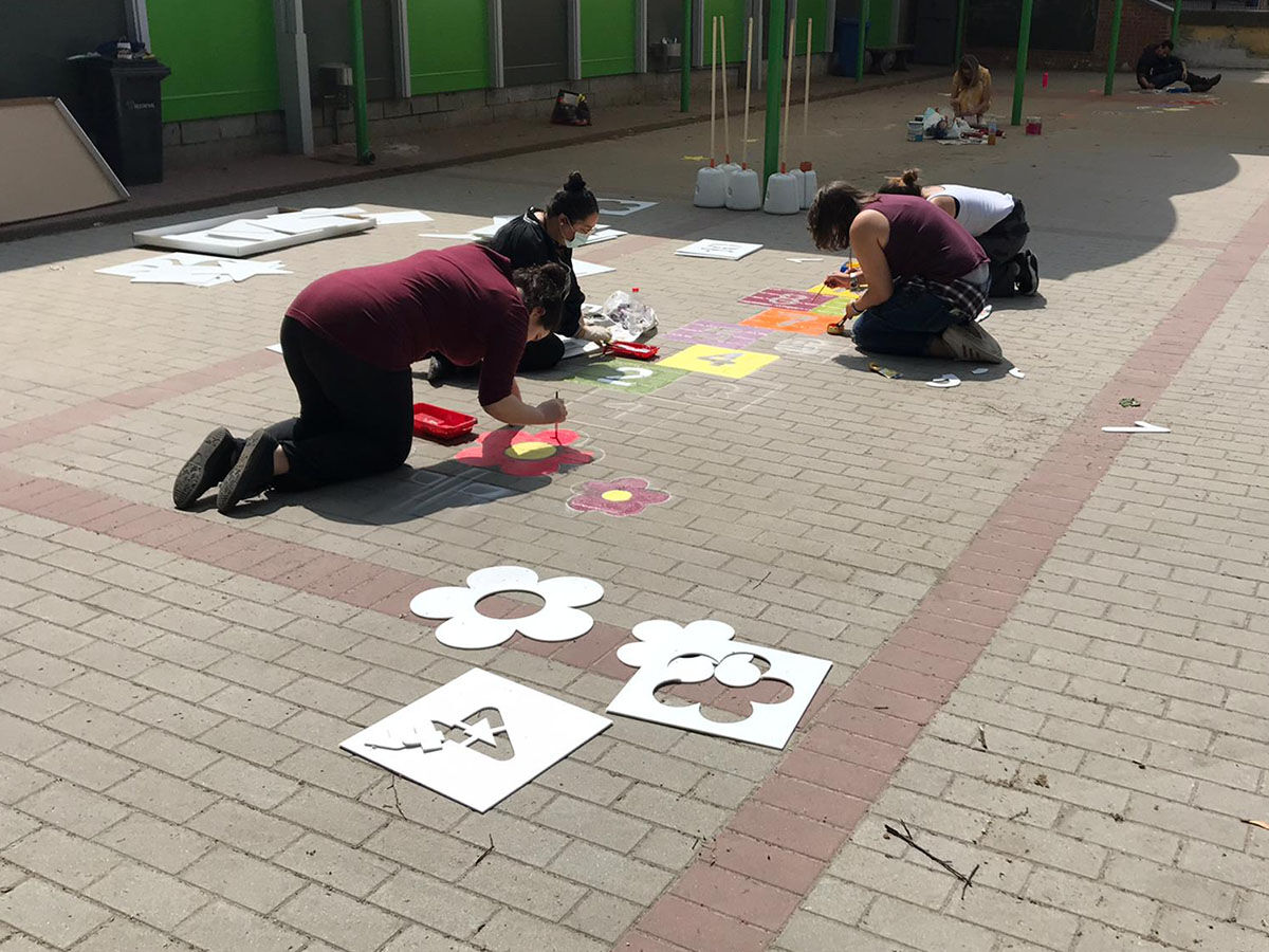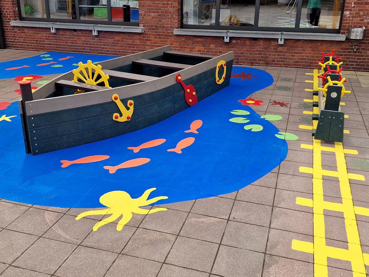 Met deze sjablonen zijn de mogelijkheden vrijwel onbegrensd. Duw de voorgesneden vormen uit de platen en teken af met een krijtje. Kleur daarna in met onze slijtvaste wegenverf. Met enkele vrijwilligers tover je de speelplaats snel & budgetvriendelijk om in een kleurrijk geheel!