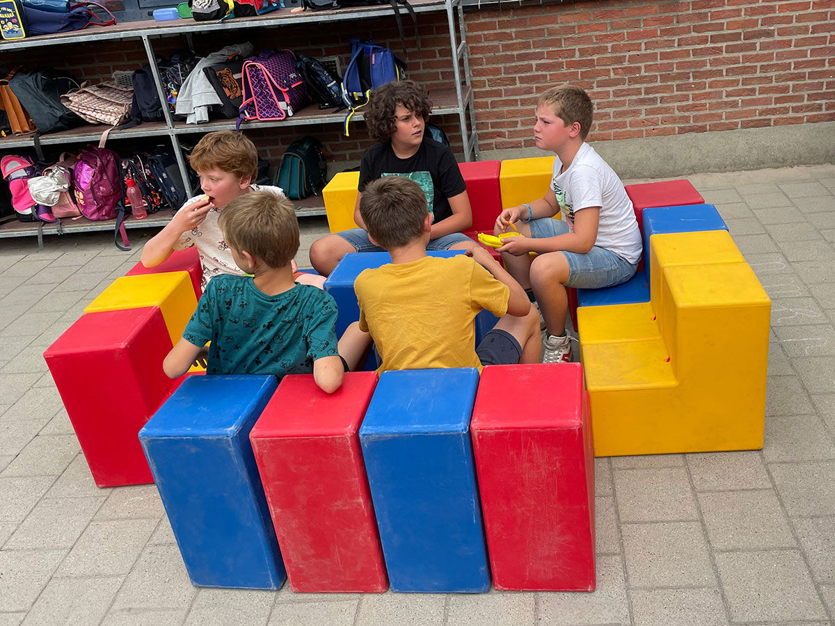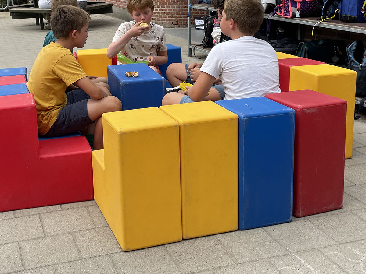 Creatief spel-en-leermiddel. Stevige L-blokken als stoeltje tijdens kringgesprekken of in een buitenklas, als spelelement of als educatieve puzzel voor collectieve opdrachten om een bepaalde figuur na te maken... En uiteraard gewoon geschikt voor vrij spel. Zowel voor binnen- als voor buitengebruik. Gemaakt uit UV stabiele dikwandige PE-kunststof, 2,2 kg per blok (klein) of 2,6 kg per blok (groot). Het product zal na verloop van tijd gebruikssporen gaan vertonen. Dit product wordt niet als “speeltoestel” beschouwd maar eerder als „crea(c)tief meubilair“.