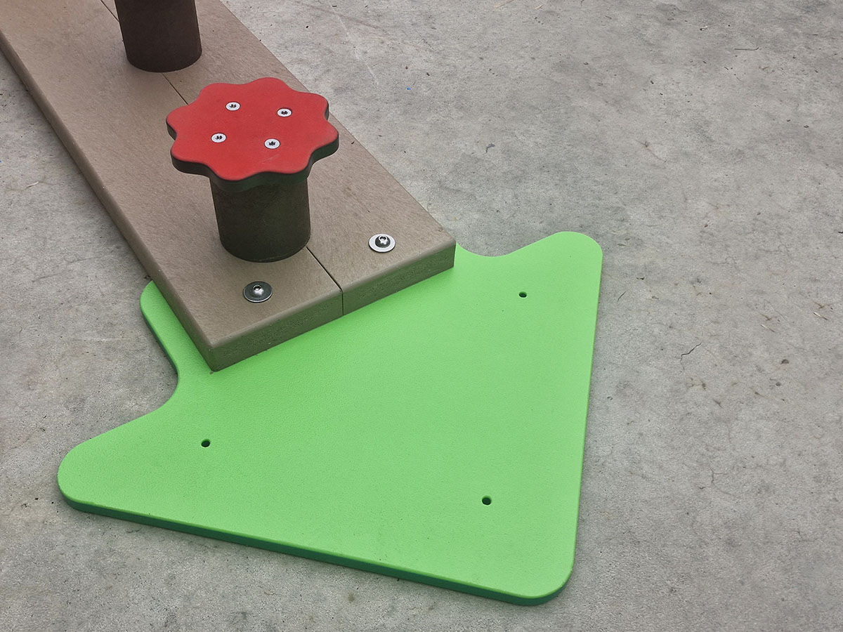 Deze eindplaat maakt deel uit van ons "verplaatsbaar hindernissenparcours" gemaakt uit onderhoudsvrij recycling kunststof om op een verharde ondergrond te plaatsen.