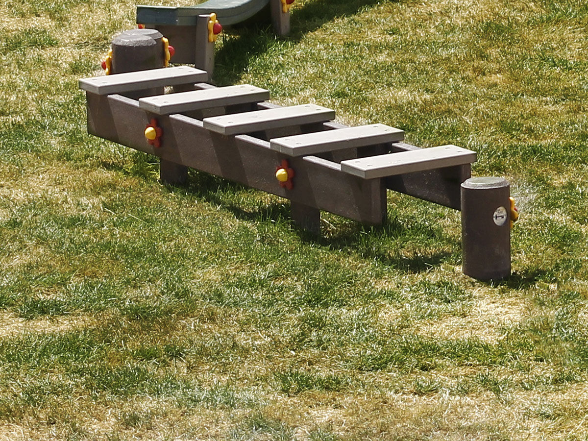 Deze horizontale ladder maakt deel uit van ons "hindernissenparcours" gemaakt uit onderhoudsvrij recycling kunststof. De 40 cm brede ladder is in te graven in een grasveld of een bos.