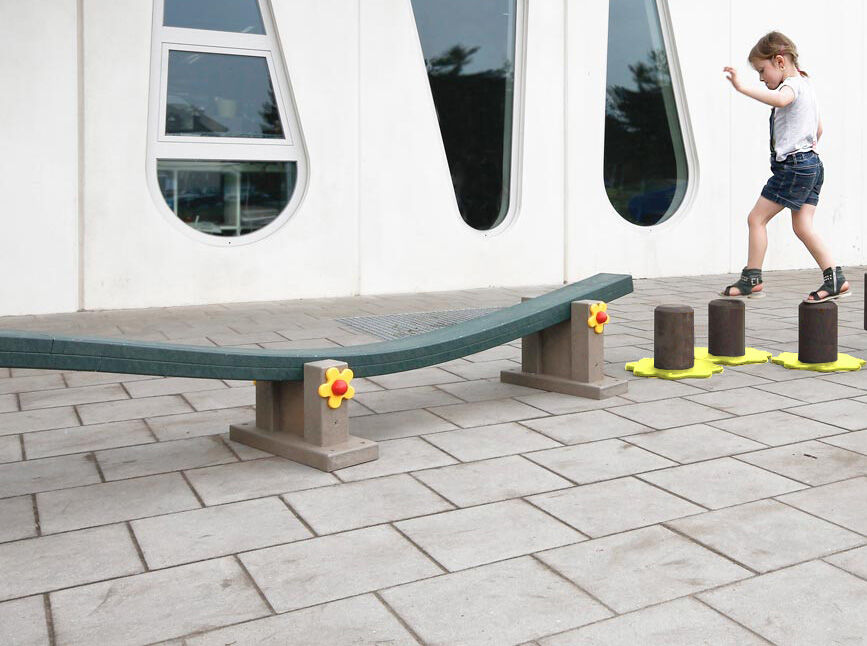 Deze stappaal maakt deel uit van ons "hindernissenparcours" gemaakt uit onderhoudsvrij recycling kunststof. De bruine paal met diameter 15 cm is rechtsreeks op de verharding van de speelplaats te plaatsen.