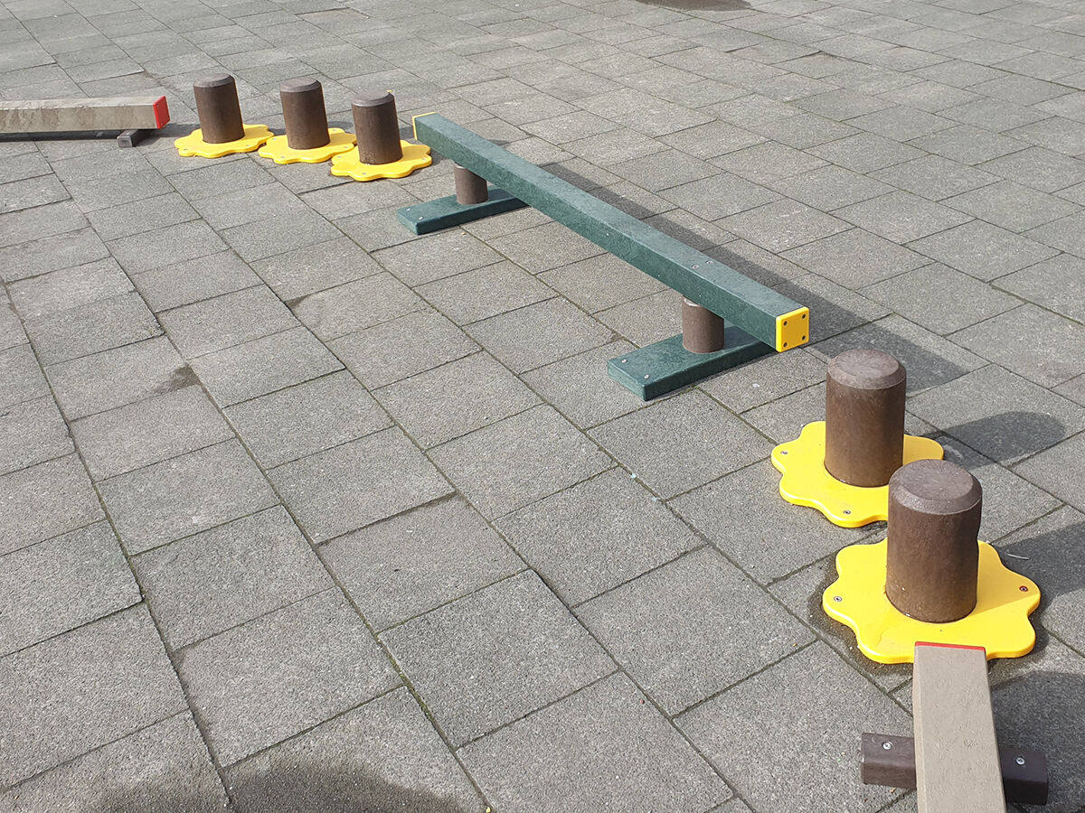 Maak een ontwerp en richt uw speelplaats in met het parcours opgesteld naar keuze: linieair opgesteld, in lusvorm opgesteld, etc.. Er kunnen ook doorsteken gemaakt worden om een binnenweg te nemen.