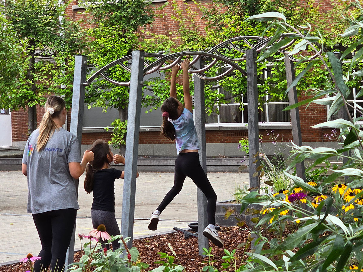 De monkeybars zijn een uitdagend en duurzaam speelelement voor de speelplaats. Kinderen trainen hun kracht, coördinatie en behendigheid door van de ene naar de andere kant te klimmen en te hangen.