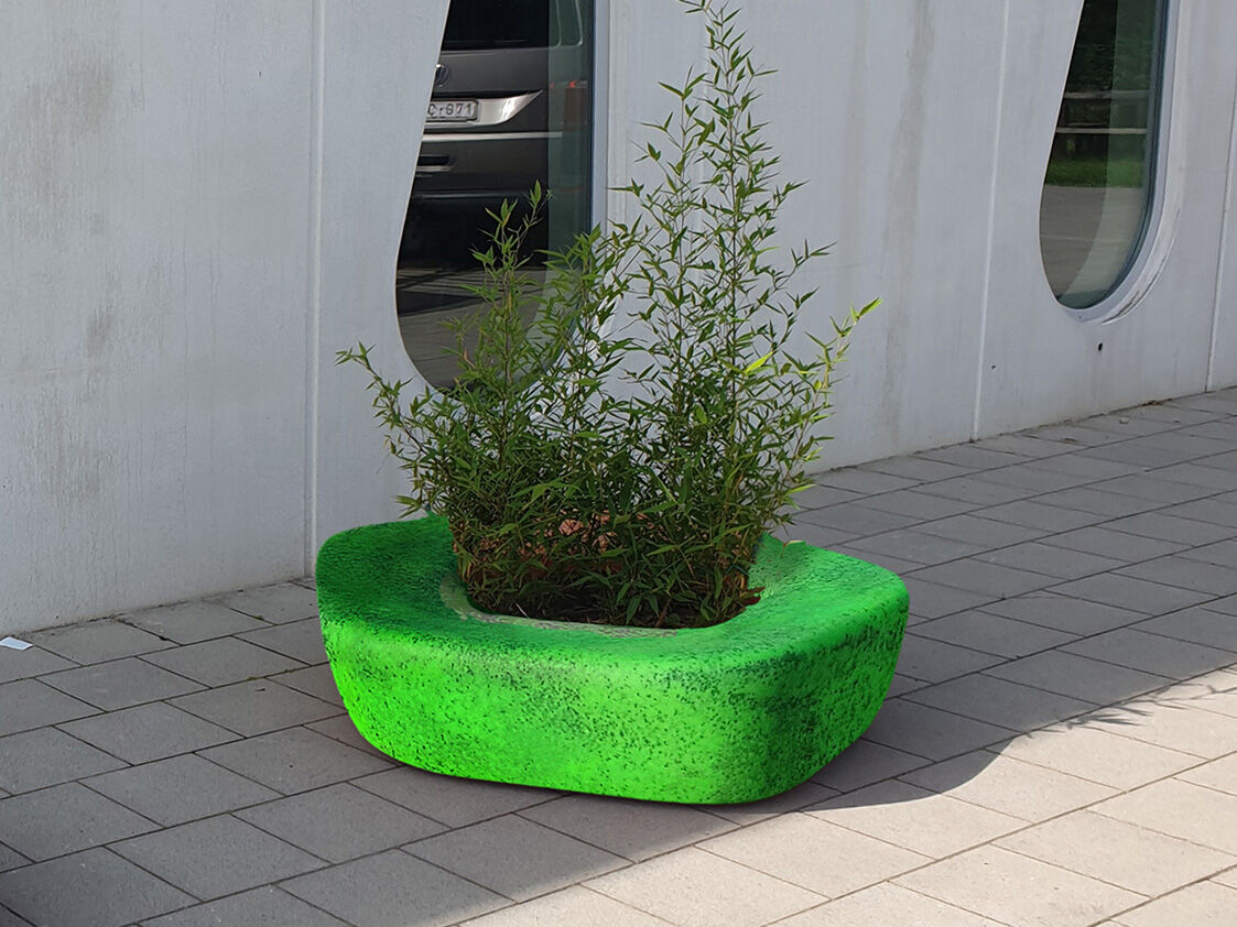 Materiaal gebruik: productieafval van UV gestabiliseerd PE (polyethyleen) Recyclagematerialen & productieafval gebruiken is niet goedkoper maar is wel beter voor het milieu (minder energieverlies) Bovendien geeft het mixen van verschillende kleuren mooie gespikkelde en wolkachtige effecten die het product extra speels maken.