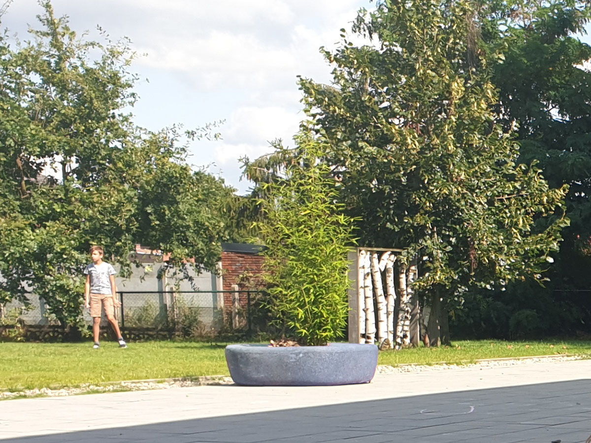 Diameter 120 cm, zithoogte +/- 33 cm. Zeer geschikt voor winterharde bamboe;