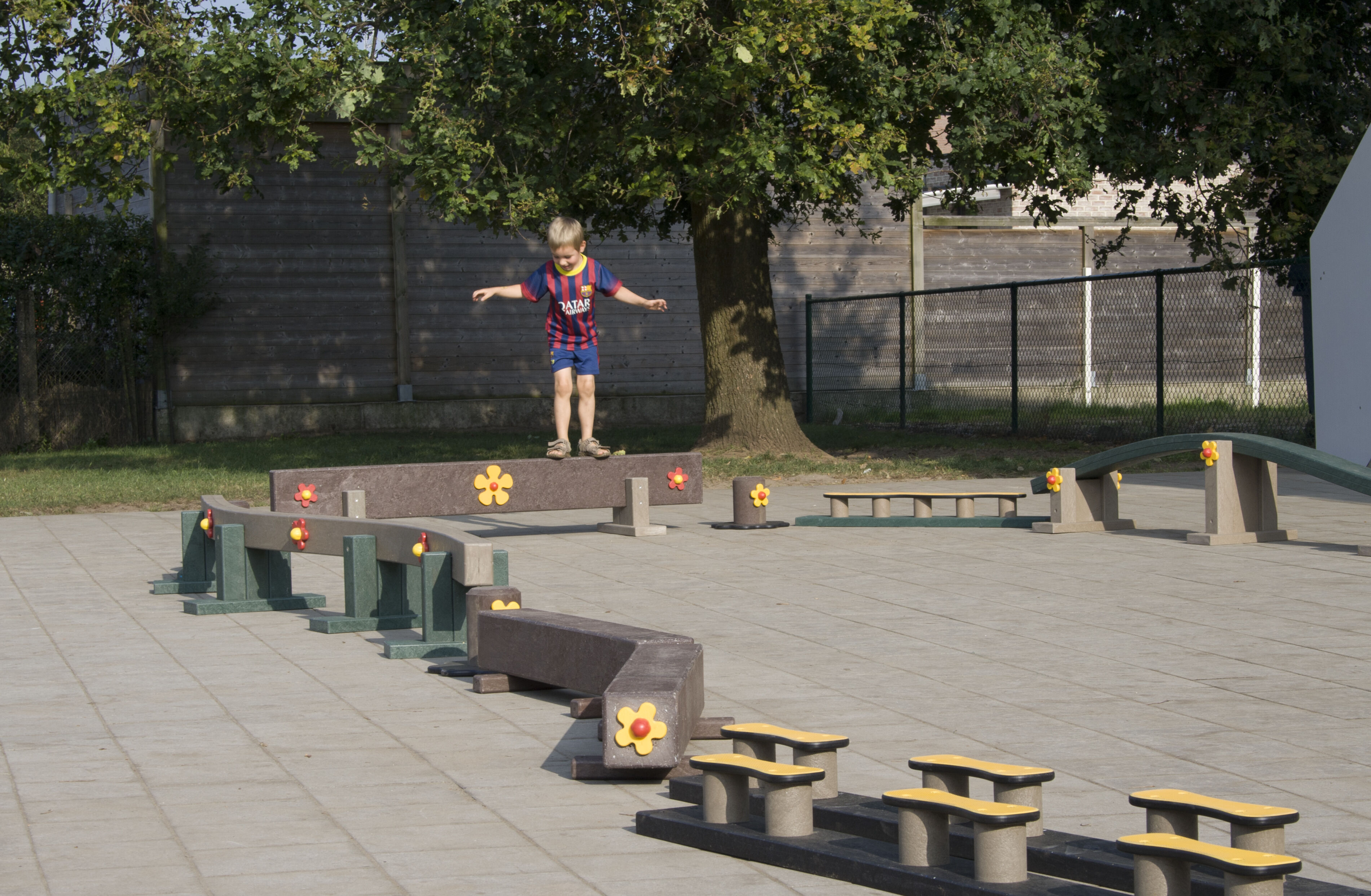 Deze smalle loopbalk maakt deel uit van ons "hindernissenparcours" gemaakt uit onderhoudsvrij recycling kunststof en is rechtsreeks op de verharding van de speelplaats te plaatsen en krijgt u gratis bij ons actiepakket parcours voor op verharding.