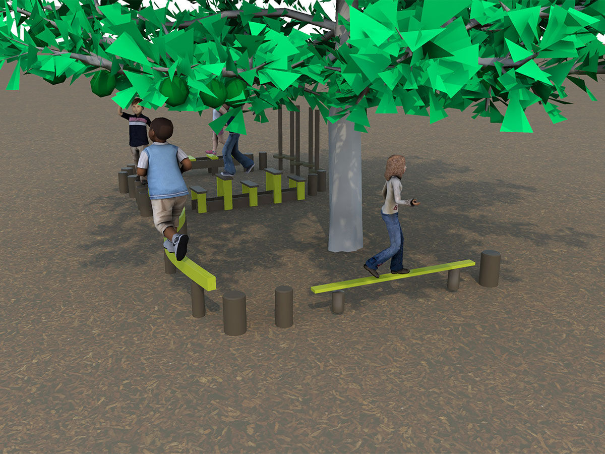 Maak een ontwerp en richt uw speelplaats in met het parcours opgesteld naar keuze: lineair opgesteld, in lusvorm opgesteld, etc.. Er kunnen ook doorsteken gemaakt worden om een binnenweg te nemen.