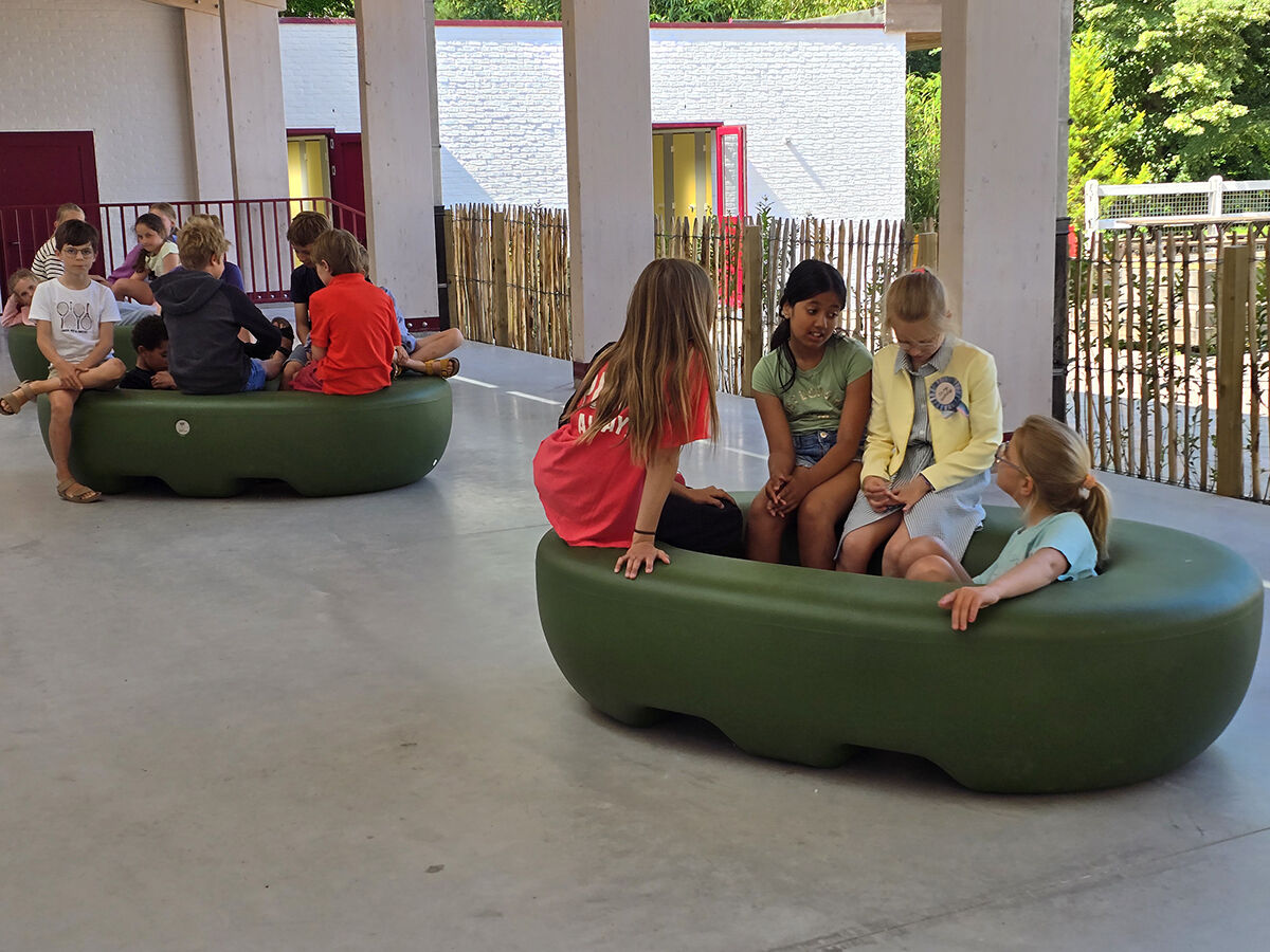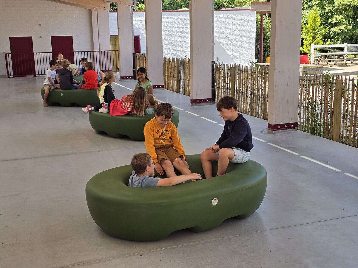 Dit robuuste en veelzijdige meubel is speciaal ontworpen voor gebruik op speelplaatsen. Het doet dienst als comfortabel zitmeubel en kan met de optionele voetplaat eenvoudig worden omgevormd tot een plantenbak. Het meubel kan met water worden verzwaard voor extra stabiliteit en is verplaatsbaar met een transpallet. Een duurzame en speelse oplossing die zich moeiteloos aanpast aan elke schoolomgeving.